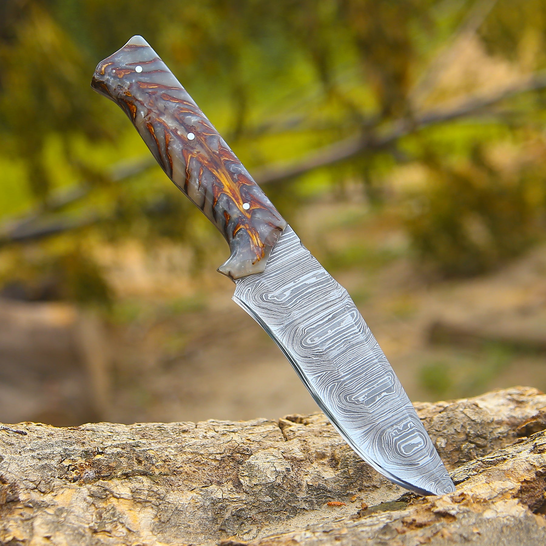 Custom Pine Cone & Resin Handle | Hand-Forged Damascus | 10" Overall