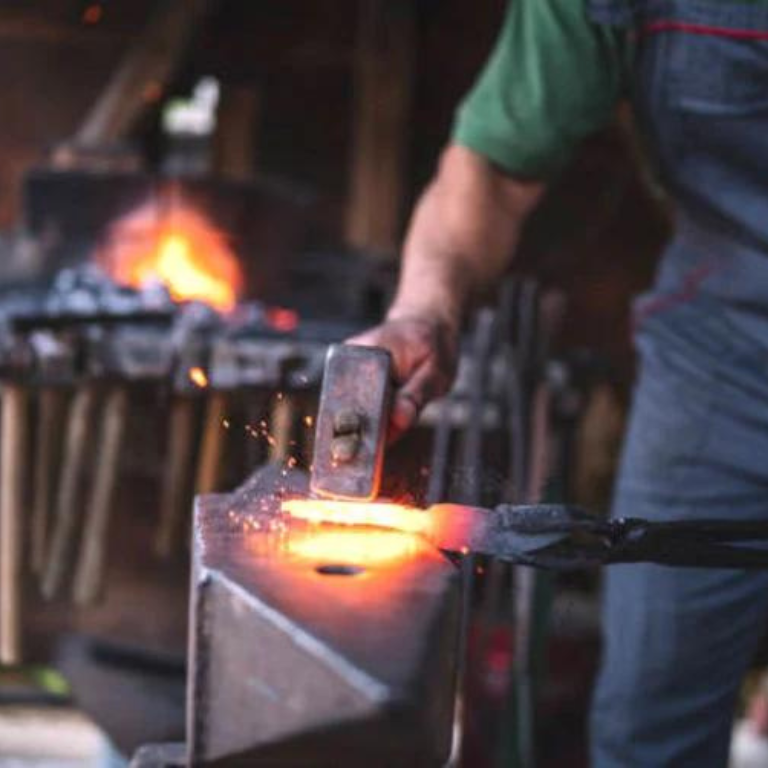 Forging Damascus involves layering and heating different types of steel, then hammering and folding them to create a distinctive patterned blade known for its strength and beauty.