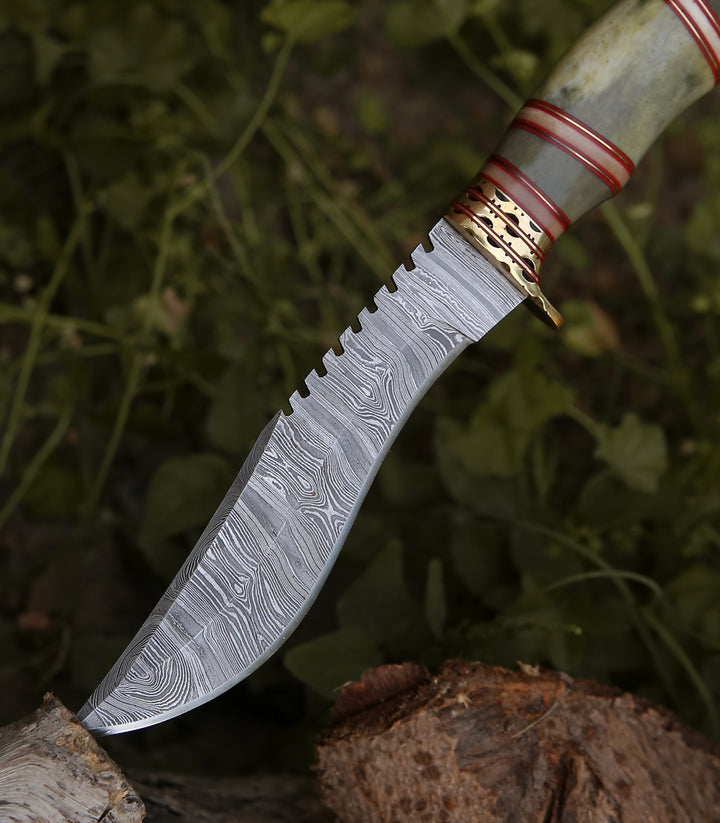 The 8.0" Damascus steel blade embodies the artistry of handcrafted blades. Its exceptional sharpness, strength, and durability make it ideal for hunting, camping, and survival situations. Experience the superior cutting performance and reliability that only Damascus steel can provide.