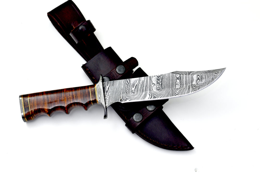 Experience the superior craftsmanship of our Damascus steel, full tang Bowie blade. With unparalleled edge retention and cutting ability, this blade will exceed your expectations.