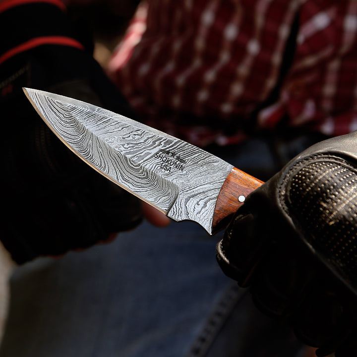 Damascus steel is a special blend of various types of steel that results in a striking and distinctive wavy pattern on the blade. It combines flexibility and strength, making it ideal for high-performance knives. Our Damascus steel knives offer exceptional cutting ability and durability.
