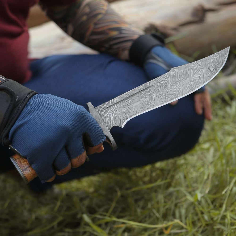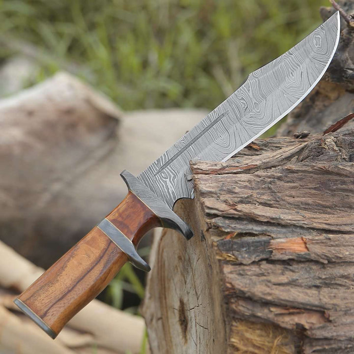 Damascus Knife - Innovator Damascus Bowie Knife with Rosewood Handle - Shokunin USA